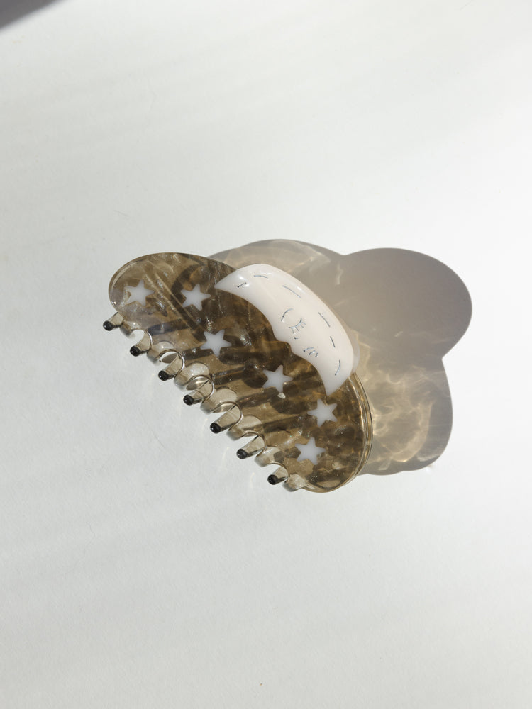 Catch a little stardust with the Winona Irene Moon and Stars Claw Clip. Made from eco-friendly cellulose acetate, this dreamy accessory is like a piece of the night sky for your hair with twinkling stars and crescent moons. Perfect for those who like to carry a bit of cosmic magic with them wherever they go.